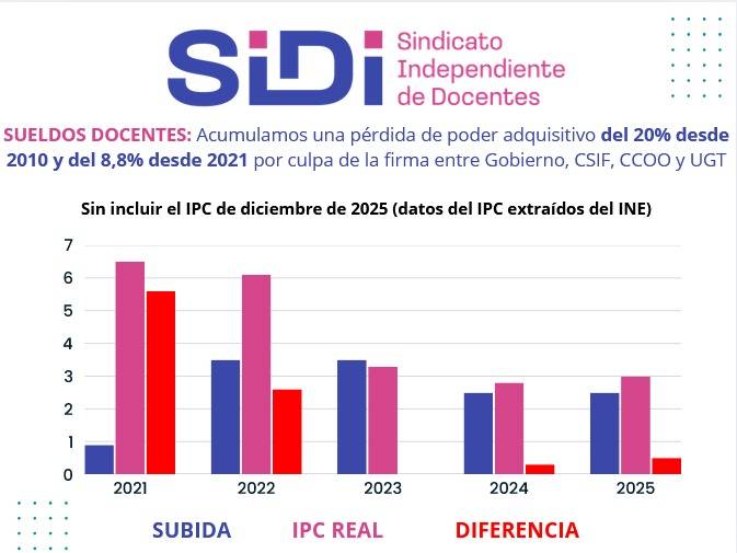 Lamentablemente se ha vuelto a firmar por los sindicatos de clase un acuerdo sobre la subida salarial para el periodo comprendido entre el 2025 y el 2028 que nos vuelve a condenar a la precariedad salarial, ya que el acuerdo es similar al anterior firmado por UGT y CCOO para el trienio 2021 a 2023 donde perdimos un 8% según los datos de INE sobre el IPC, además; si nos retrotraemos a 2010 acumulamos una pérdida del 20%, por lo que ni siquiera se recupera lo perdido sino que se va a ir acumulando pérdida de poder adquisitivo año tras año, de mantenerse la tendencia del IPC de los últimos años, como ya podemos constatar en los datos de 2025.