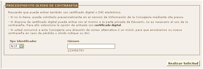 El cambio o recuperación de las contraseñas se realizará mediante el procedimiento indicado a continuación:
